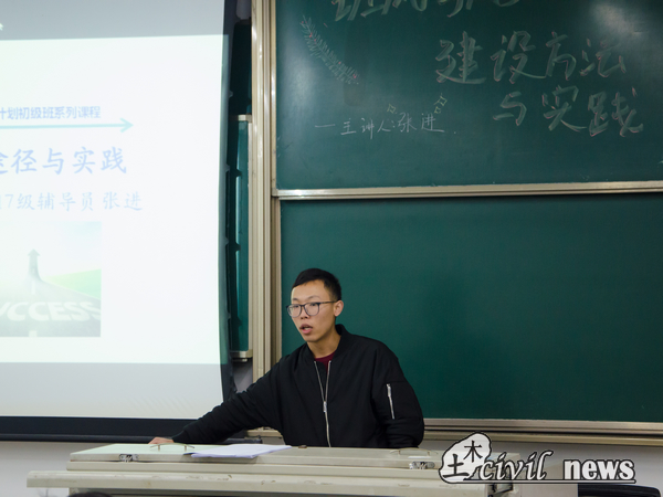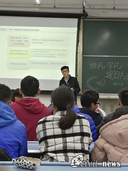 在课程内容结束时,巨老师向同学们展示了土木16级几个优秀班级,同时希望同学们能向这几个班级学习。至此,本次新阶梯成才“班风学风建设方法与实践”课程成功落幕。